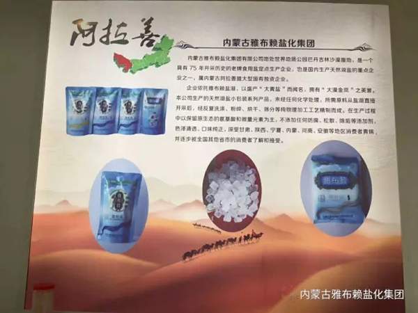 在此次博览会上雅布赖盐化集团有限公司展出了加碘精制盐、腌制盐、大青盐、晶粒盐、罐装盐根、礼品盒六种盐产品。