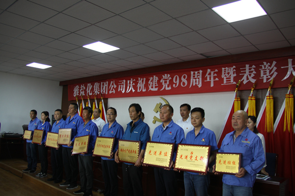 会上,公司党委委员、雅染公司董事长李玉明宣读了《乐鱼买球-乐鱼买球(中国) 关于表彰2018年度先进集体和先进个人的决定》,党委委员、副总经理徐宪国宣读了《内蒙古雅布赖盐化集团公司党委关于表彰2018-2019年度先进党支部、优秀共产党员、党务工作者的决定》。在欢快的乐曲声中,出席会议的领导为获奖的先进集体和先进个人代表颁发了奖牌和荣誉证书。