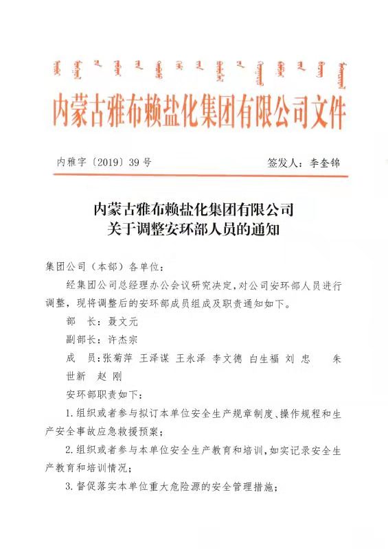 关乐鱼买球-乐鱼买球(中国) 于调整安环部人员的通知