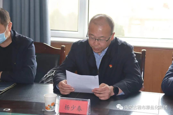 杨少春在讲话中指出,李奎锦同志政治素质好,组织领导能力强,基层历练经验丰富,熟悉工业企业发展实际,有丰富的基层实践和国有企业管理经验,到雅盐化集团公司任职以来,企业生产销售稳中有增,利润税金持续增长,为职工增收,企业提效,推动地方经济高质量发展作出了积极贡献。希望雅盐化集团公司全体干部职工把思想和行动统一到盟委行署的决定部署上来,恪尽职守、精诚协作,创新工作理念,奉献智慧激情,苦干实干,不负重托,不辱使命,为企业和全旗经济高质量发展做出新的更大贡献。